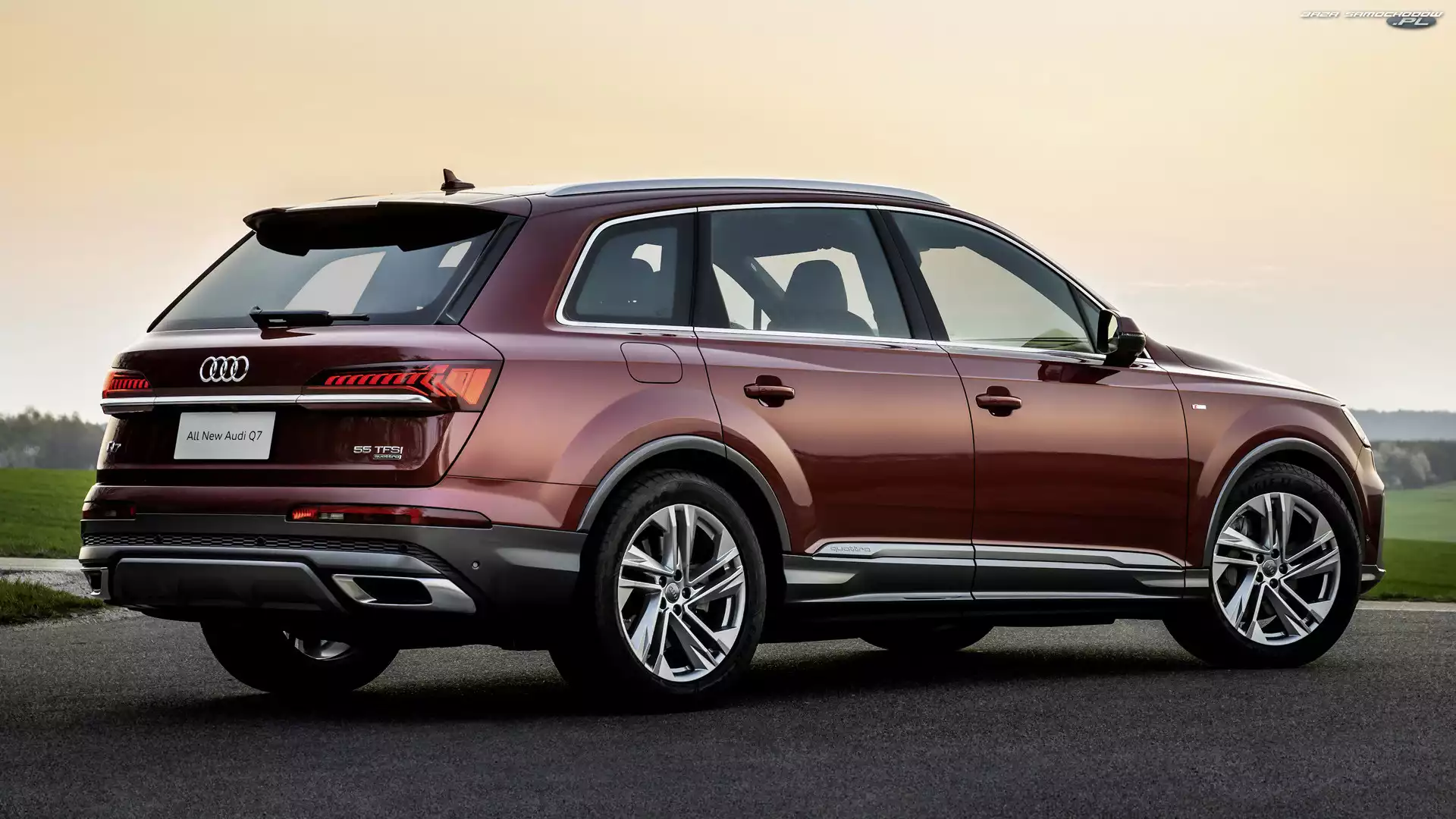 Audi Q7, 2020 Opon, Audi Q7, Profil Tył, Czerwone, Audi Q7 Audi Q7, Białe Audi Q7, Bok Przód, Czerwone, Audi Q7 Słońce, Audi Q7, Góry Audi Q7 S Audi Q7 S, Czerwone Audi, Hummer, Jeep