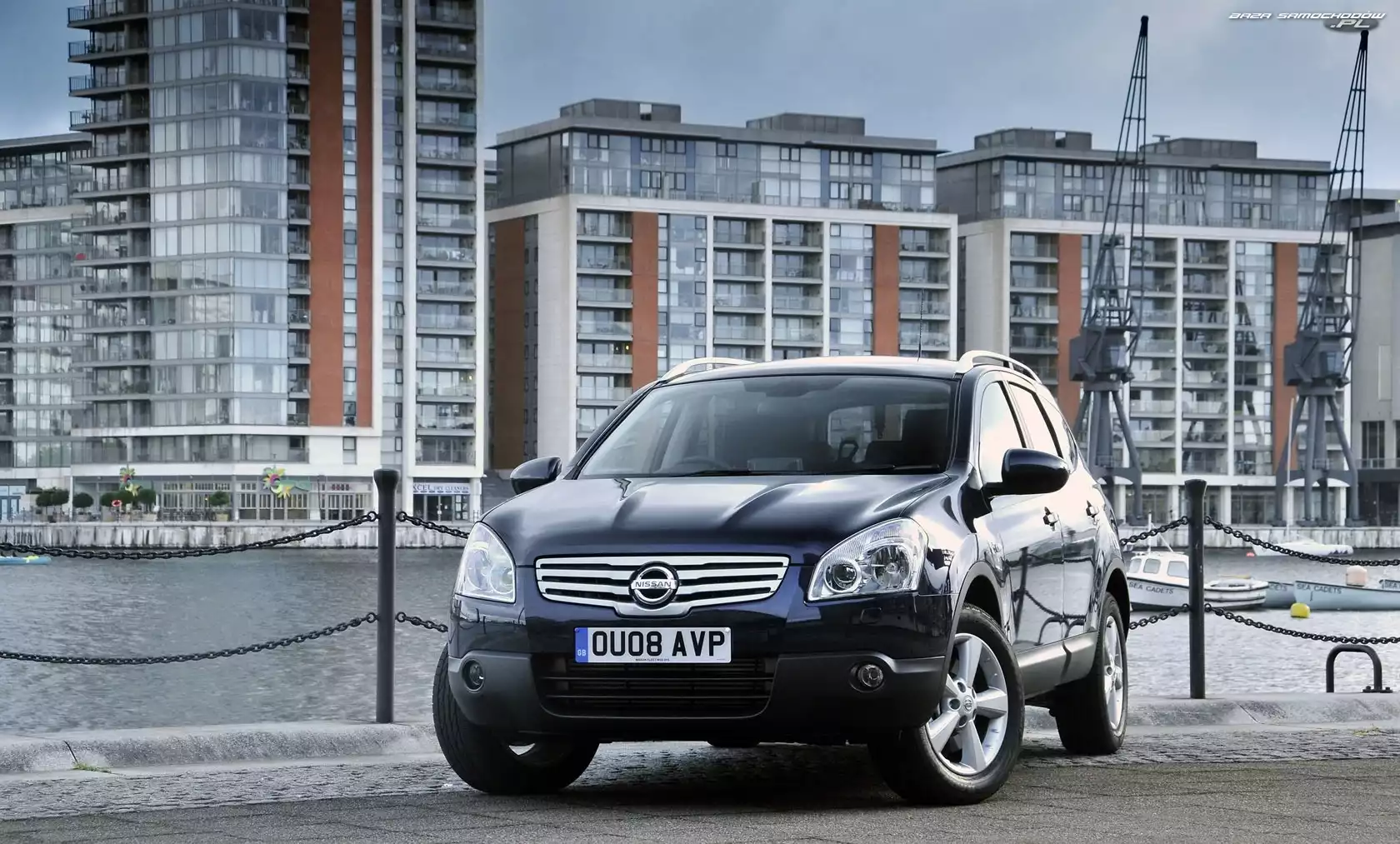 Nissan Qashqai +2 Droga, Samochód, Dom, Latarnia, Deskorolki, Ulica Nissan Qashqai e-Power Niebieski, Nissan Qashqai Bok, Nissan Qashqai e-Power Nissan Qashqai +2, Grill, Przód, Maska Nissan Qashqai Qashqai, Biały, Nissan